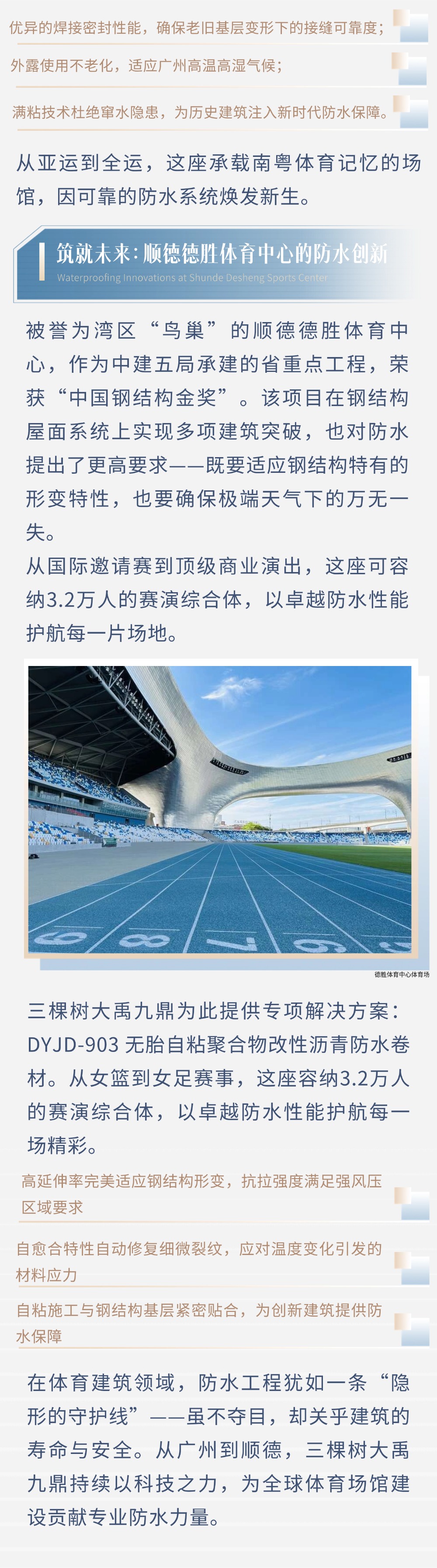 守护运动场 | 三棵树大禹九鼎以专业防水护航体育盛事