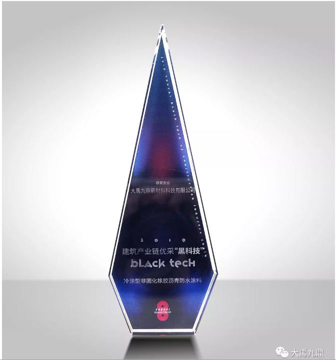 大禹九鼎冷涂型非固化橡胶沥青防水涂料荣获2019建筑产业链年度优采“黑科技”称号。
