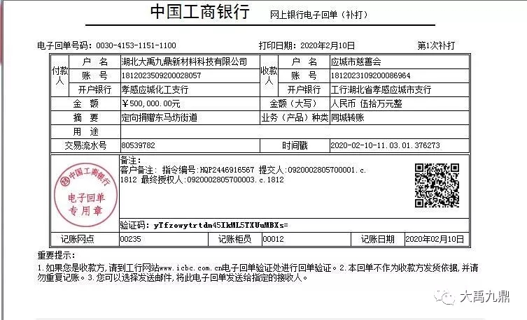 疫情就是命令,防控就是责任。在这场不见硝烟的持久战中,湖北省作为疫情“重灾区”,各大定点医院物资紧缺,为最大力度支持疫情防控工作,2月10日,大禹九鼎再次开启全流程绿色通道,向湖北省应城市慈善会捐赠疫情防控资金50万元人民币,全力支持抗击新型冠状病毒肺炎疫情工作,紧急驰援湖北战役。