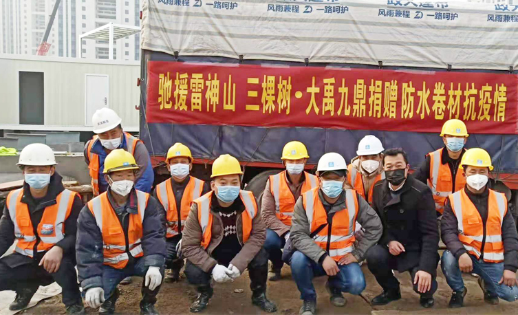 2月2日晚三棵树·大禹九鼎接到雷神山医院的援建需求,湖北生产基地疫情援建小组立时返岗,生产、仓储、物流等连夜协调,全力安排部署。4小时后,第一批防水材料连夜发出,次日八点三十分运达雷神山项目组,驰援医院建设。整个过程历时12小时,与疫情生死竞速。