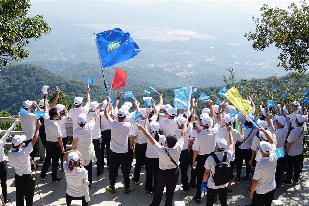 决战秋收誓师大会落幕后,全国17大战团联动发起“问鼎巅峰”行动,并产生一定的积极影响。会后,中后台干部组成“决战冲锋”战队问鼎帽峰山,提振士气,蓄势年终冲刺。
