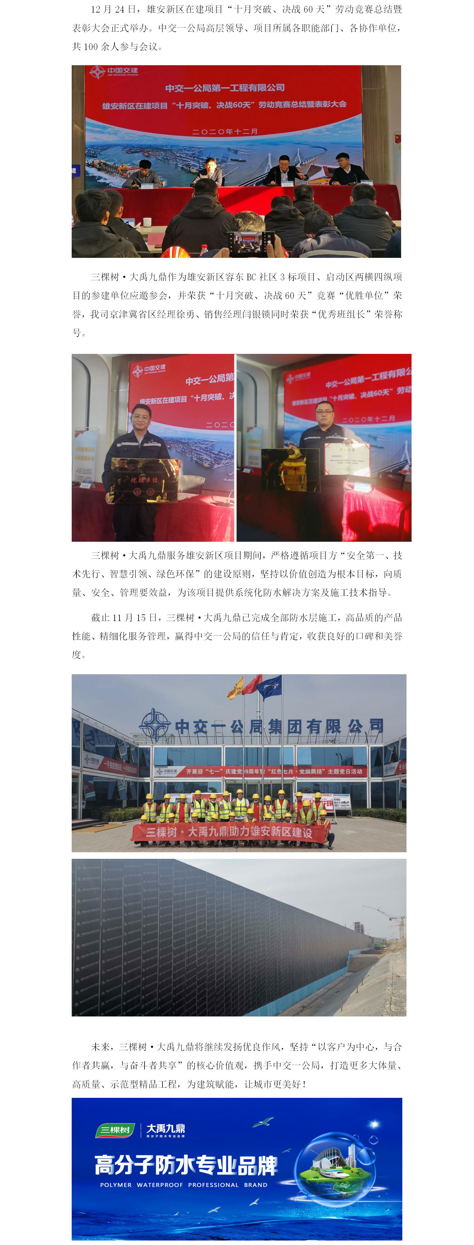 【荣誉时刻】三棵树·大禹九鼎荣获雄安新区建设“优胜单位”称号