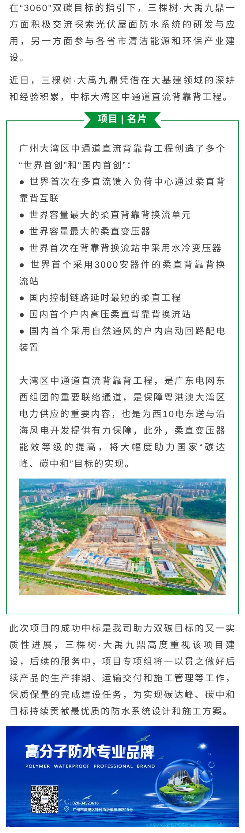 助力“双碳”,三棵树·大禹九鼎服务大湾区中通道直流背靠背工程