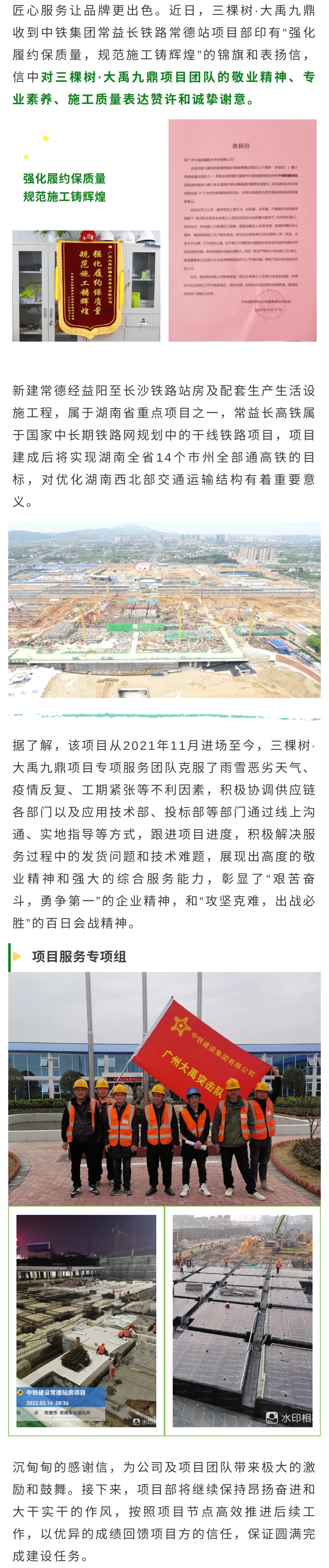 匠心服务让品牌更出色——三棵树·大禹九鼎获中铁集团常益长铁路常德站项目部锦旗