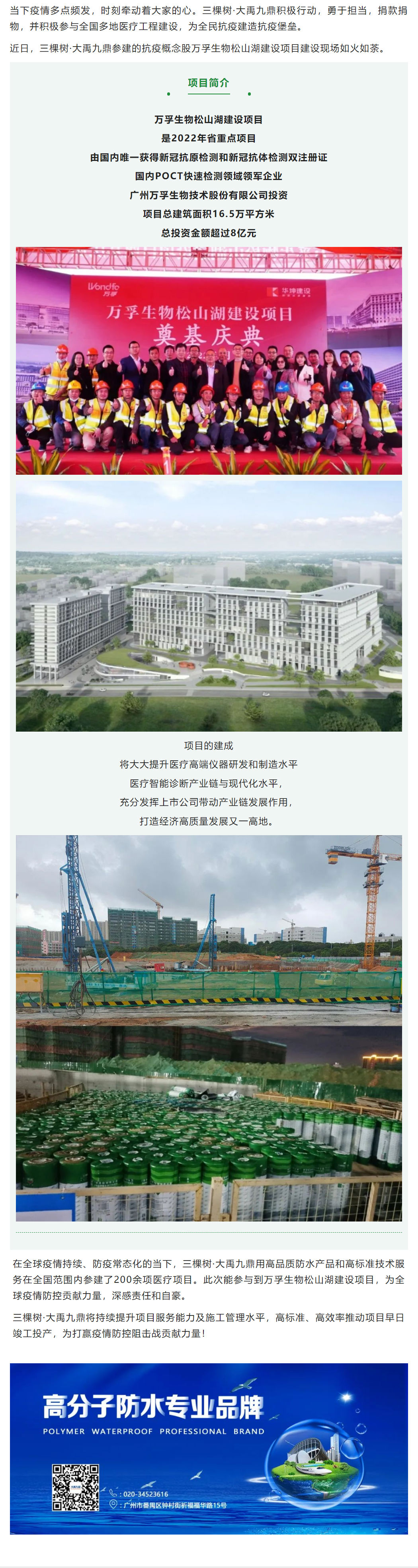 抗疫行动 | 三棵树·大禹九鼎助力万孚生物松山湖建设项目