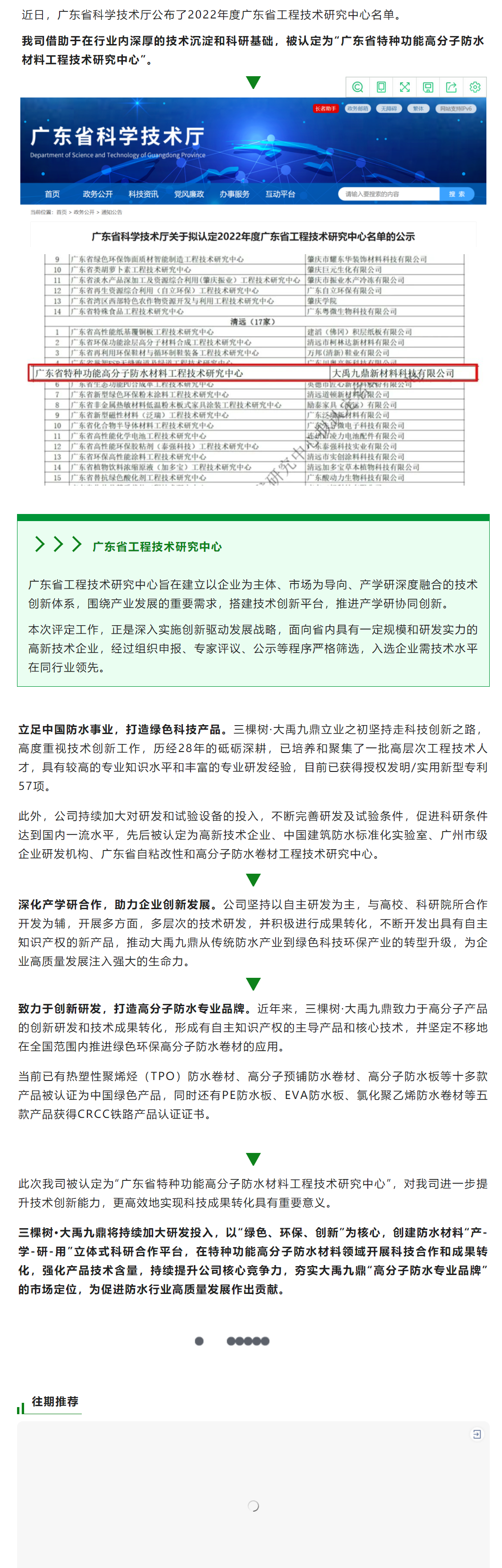 【重磅资讯】我司被广东省科技厅认定为“广东省特种功能高分子防水材料工程技术研究中心”