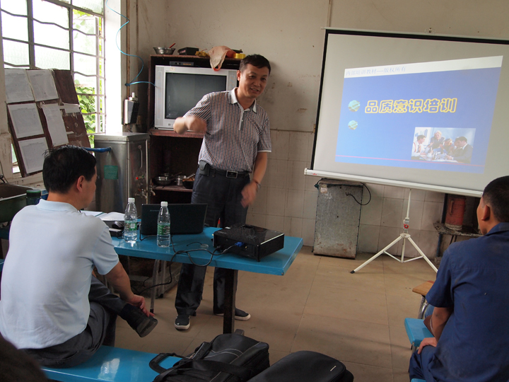 培训前,胡总对大家进行了站姿以及仪态方面的训练,随后,两位领导通过PPT分别讲解了全面质量管理的理念和保持优质产品质量的重要性,并结合实际,对照检查,查找我们存在的问题,同时还举例说明出现质量问题存在的严重后果。在如何解决现有的问题,如何全面提高产品质量问题,采取哪些措施等也一一作了讲解。
