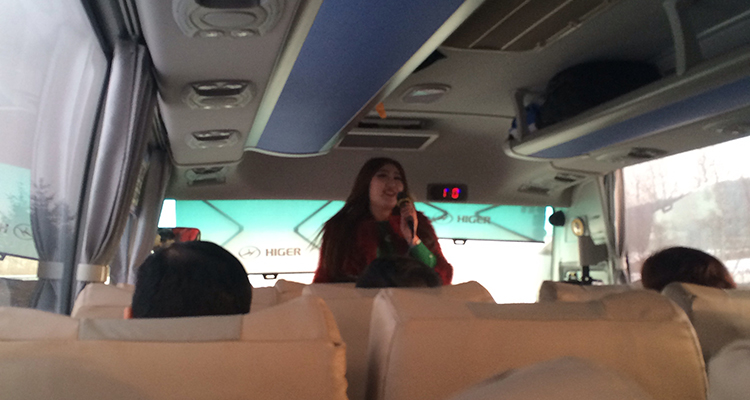 接待我们的导游小姐姓于,是哈尔滨人,备具东北人的特点,高挑苗条,热情美丽。沿途给我们介绍当地的风土人情,特色景点。语音标准,风趣幽默,很能引人入胜。记得她在给我们介绍朝鲜族女人时说:朝鲜族女人温柔、贤慧,长相白美,还很会跳舞,但他们地位不高,在最早时,只要能帮她们解决温饱问题,用二袋大米就可以把姑娘带回家,这话顿时让男同事们唏嘘不已,只恨为什么没带大米过来。