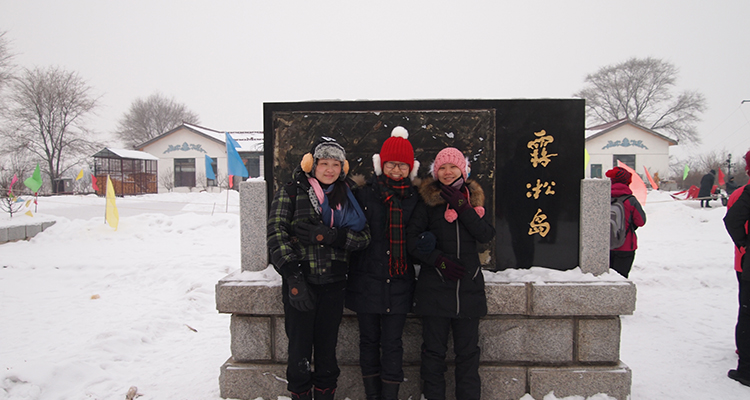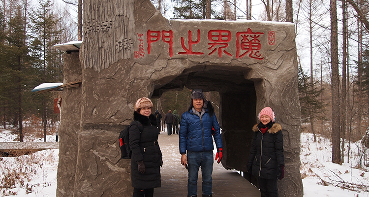 第二站是松花江上的雾淞岛,它与桂林山水、长江山峡、云南石林并称为中国四大自然奇观。松花江两岸树茂枝繁,冬日里不冻的江水腾起来的雾淞,遇到寒冷的空气,在树上凝结成霜花,气象学称之为“雾淞”,俗称树桂。也由此可见,形成这一奇观需要多方的条件配合,并不是随时能看见的,我们一行人早上5:30起床,守了一上午也没能有幸看到,甚为遗憾。下午参观了长白山魔界,在这原始森林里,我们看到了守护这里千年的神树,象征北斗七星的七星泉眼。由于北方天黑得早,才4:30就已经日落西山了,我们也早早地返回了入住的酒店。