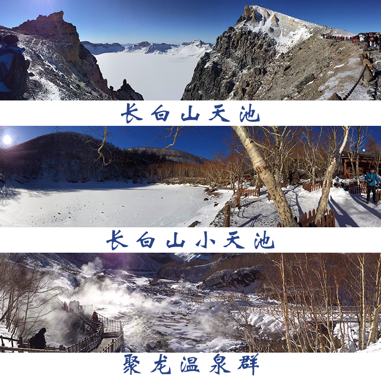 第二站是长白天池,这是此行最靓丽的一道风景线,于导用二句话概括了长白山的奇特美景:“木头沉下去,石头浮上来,大天池水流不干,小天池水注不满”、“一山有四季,十里不同天”。长白天池是中国与朝鲜的界湖,也是中国最深的湖泊,最大的火山口湖,海拔2691米。我们经过半小时的盘山公路才到达山顶。果然寒风刺骨,我们全身武装得只露出二只眼睛,完全认不出谁是谁了,画面特有喜感。顶着凛冽的寒风,终于来到了天池边上,此时的天池,完全被冰雪封住,自然也看不到它的奇特之处。虽然如此,我还是很兴奋,因为于导告诉我们来天池的游客只有30%看到了天池,长白山气候瞬息万变,山顶常年云雾缭绕,使得天池也若隐若显。据说当年江泽民主席三次上来山顶,也未能有幸看到天池全貌。紧接着,我们参观了长白瀑布,松花江之源。它绮丽壮观的景象至今令人流连忘返,山是雪山,树是雪树,就连风也夹着雪,瀑布形成的冰挂像玉石般冰晶玉洁,美丽无暇。在瀑布下方,有聚龙温泉群,有30多眼泉水,喷涌而出,温热的泉水在石头小隙间穿梭,欢快地流淌,所到之处,水气弥漫,如雾、如烟,宛如人间仙境。山脚的小贩,利用此处的温泉煮鸡蛋卖给旅游,据介绍,煮熟的鸡蛋,黄凝固,蛋清不凝固,有很高的医疗价值。如此的鸡蛋,我便买了几个剥开来,看着蛋清,蛋黄都是凝固的,吃了一口,咸咸的,像咸蛋,更像坏蛋,还五元一个,很坑爹有没有?