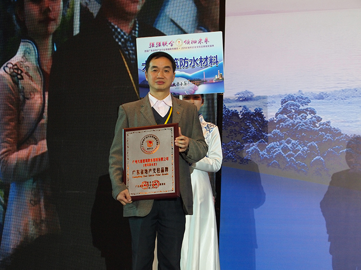 广州大禹公司在此次颁奖盛典中荣获了“广东省地产(建筑防水类)十大支柱品牌”称号