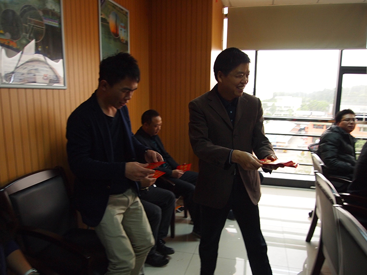 3月1日上午,同事们纷纷回到熟悉的办公室,发利是送祝福,新年的热闹景象在办公室里持续。9点28分,在这个吉祥的时刻,全体同事在公司大门口举行了开工仪式,噼里啪啦的鞭炮声宣布着大禹今天正式开工了。随后是开座谈会议,董事长王录吉先生亲切的给员工们发红包与同事们交流分享了过年趣事, 有的同事说,过年到处走访亲戚拜年,比上班还累。有的同事认为过年跟家人团聚,陪家里人出外旅游,感觉陪在家人身边感觉很幸福很温馨。而有的同事在过年完成了自己的终身大事,步入了婚姻的殿堂。另外有的同事感叹终于能回来上班了,不用再被三姑六婆作为调研对象或者逼去相亲了。