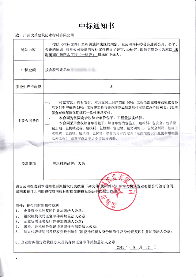 发布时间:2015-08-13作者:来源:广州大禹招投标部浏览次数:4753
