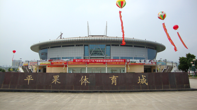 平果县体育馆,建筑面积10800平方米,投资4900万元兴建,是广西最大的综合性体育馆,是平果体育城的一部分,体育城位于平果县城西北,占地面积300亩。