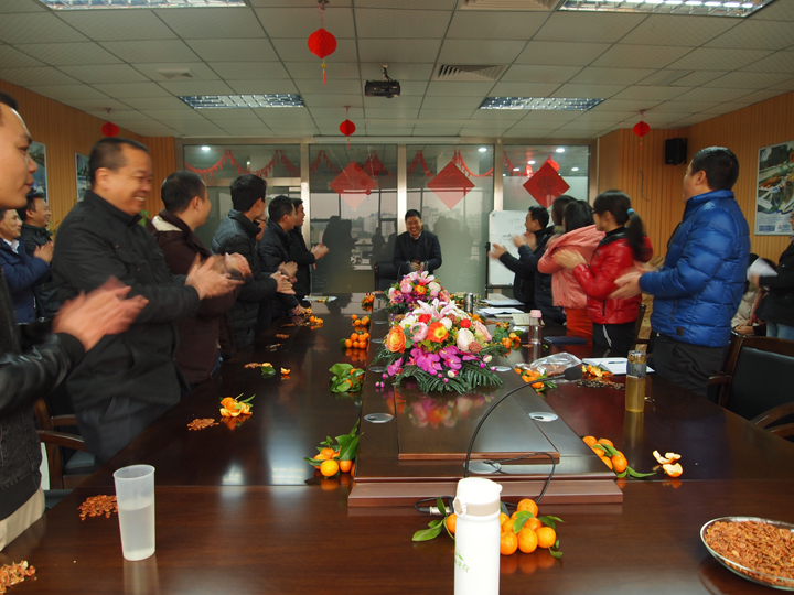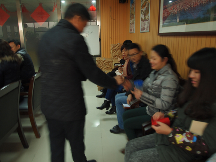会议结束,董事长王录吉先生亲切的给同事们发红包道祝福,并领衔同事们在广州番禺城市客家饭店吃开年饭。饭局中,王总携领导层邀大家举杯同贺,互致问候。在此,广州大禹公司全体同仁向各位新老客户,经销商,供应商:祝大家在新的一年里新春大吉,阖家幸福,心想事成,马上发大财!