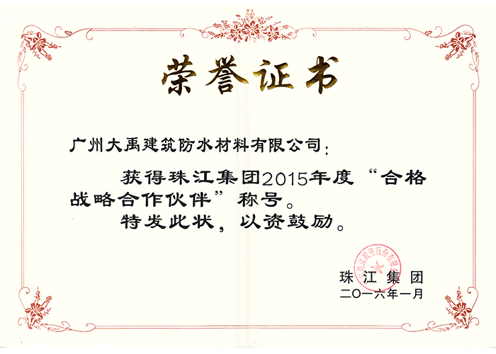 2015年,我司与广东珠江投资股份有限公司建立了战略合作关系,一年来,双方合作情况良好,合作融洽、愉快。我司优质的服务和稳定的质量得到了珠江投资公司的肯定和认可。近日,珠江投资集团授予了我司“合格战略合作伙伴”的称号,并予以颁奖,在此,我们谨表示赞赏和祝贺!