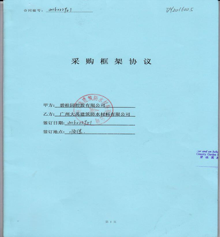 近日,广州大禹公司销售中心营销经理拜会了碧桂园控股有限公司的相关领导,并与碧桂园控股公司现场签订了战略合作协议。