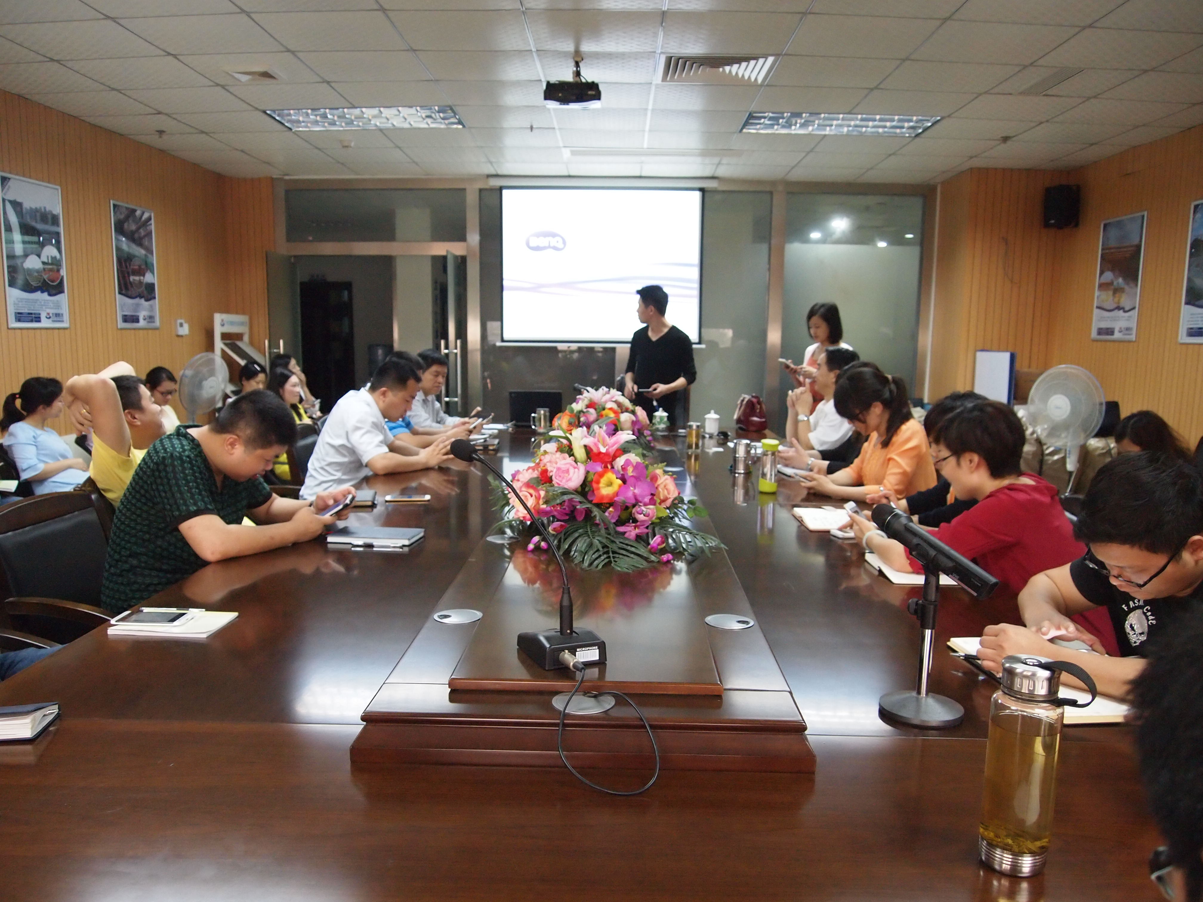 4月16日上午,我司组织全体员工在会议室进行“纷享逍客”移动办公应用总动员,并邀请到纷享逍客的杨洋先生到现场作应用指导培训。