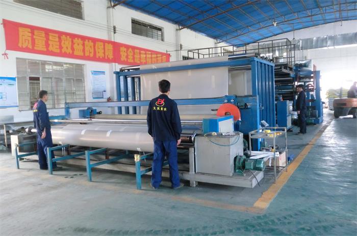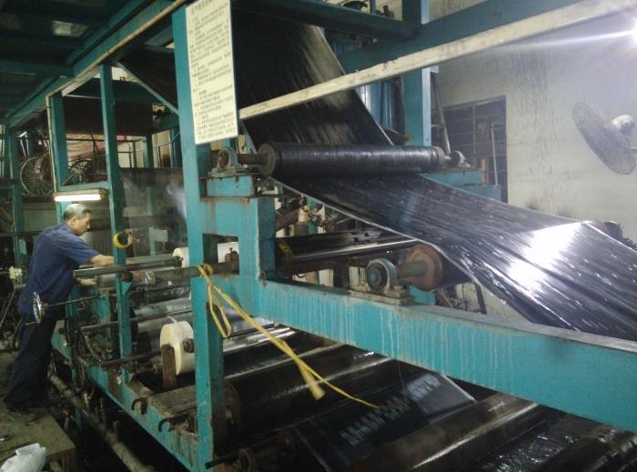 近期,我司步入订单生产高峰期,多个大型防水工程项目施工在即,为保障客户施工进度,工厂周末、节日期间照常上班,日夜排班,坚持生产。沥青基线上,翻滚的沥青喷涌成型,行云流水般流转于机器之间,犹如瀑布般悬挂着,经过一道二道冷却工艺,泛着水珠的光面卷材,犹如“黑美人”般,看起来也居然如此诱人,经过拉伸、延展,最后哗的一下,“美人”成卷、装袋,场面甚是宏伟壮观。奋战在一线的大禹人,日夜穿梭于机器之间,汗水浸透衣背,却不忘“精心照料”他们的“美人”杰作。高分子线上,处处可见忙碌的身影,该生产班组在连续奋战几天的最短的时间内,生产完蒙华铁路防水工程6万多平米防水卷材,且保质保量,堪称劳模班组,值得称颂表彰。