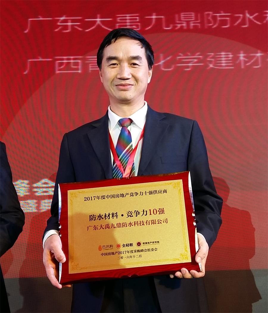 会上,大禹九鼎荣获“2017年度中国房地产竞争力十强供应商/防水材料●竞争力10强”。