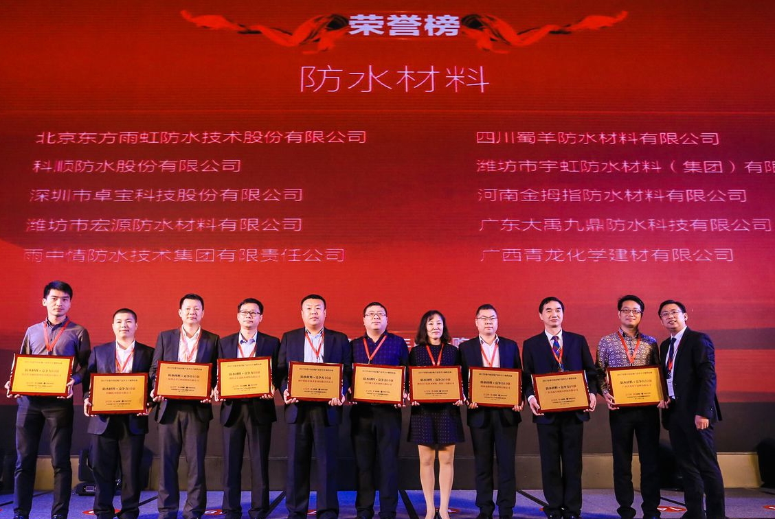 本次盛典,我司经过层层角逐和严格评选,最终进入防水材料●竞争力10强,这得益于广大客户朋友的大力支持与认可,也归功于公司多年累积的实力口碑。大禹九鼎创立21年,服务了大量的客户,累积工程案例大小上万个,21年专业防水底蕴,厚积薄发,未来我们仍将坚持“以专业赢得客户信赖,用品质铸造经典品牌“发展之路,努力保持行业竞争力优势,迈步向前,再创辉煌。
