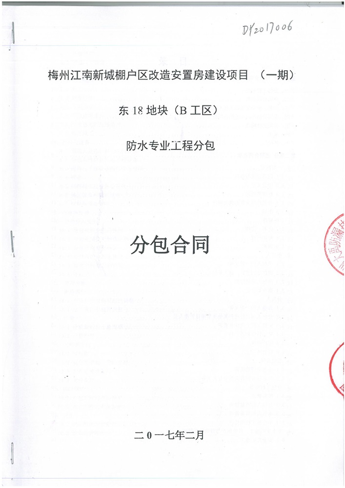 梅州江南新城棚户区改造安置房建设项目东18地块防水分包工程