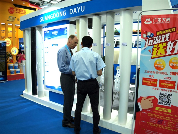 广东大禹在派发全场最优质豪礼,也许您还不知道吧。为营造良好的洽谈氛围,配合主办单位音控规定,静音展示,也为了突出产品展示,真正回馈专业观众,我司特别策划抽奖游戏互动环节,与观众低调互动,持续引来关注。价值388元精品男士手提包,价值99元精美青花瓷碗套装,防水展全场最优质豪礼,有木有注意到,已经有十几位幸运嘉宾报豪礼回家了,有木有心动?!
