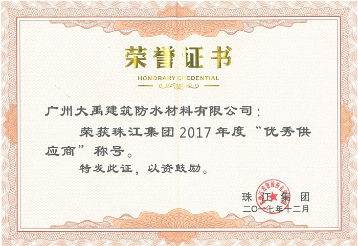 【合作荣誉】广东大禹荣获珠江投资集团2017年度十佳供应商