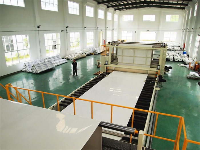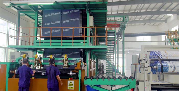 大禹九鼎基地目前引进的是国内外先进的自动化生产设备,共建成2条改性沥青和4条宽幅合成高分子防水卷材生产线,高分子生产线宽幅为2m和4m,以生产绿色环保高分子防水卷材为主,以满足交通、市政工程等日趋增长的高品质防水市场需求。
