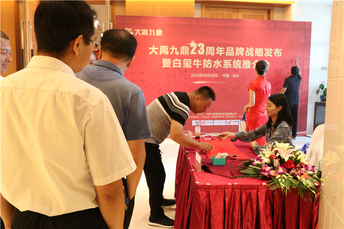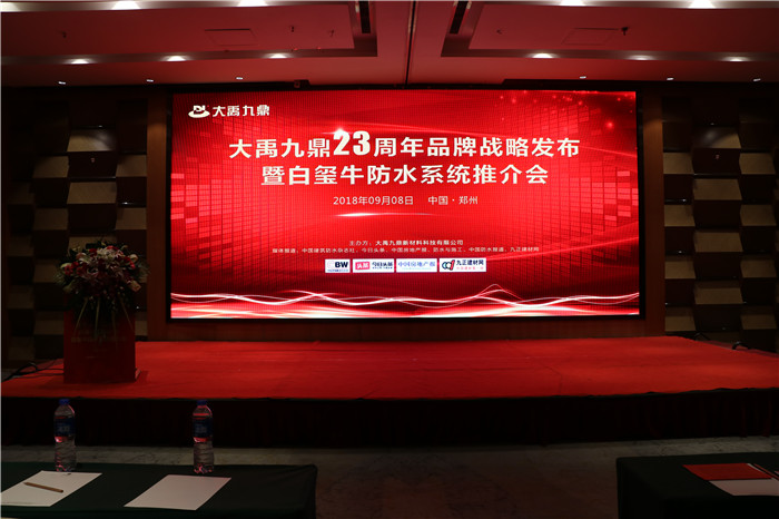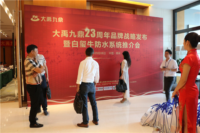 如椽巨笔绘新景,气势恢宏创伟业。9月8日,由大禹九鼎新材料科技有限公司举办的“大禹九鼎23周年品牌战略发布暨白玺牛防水系统推介会”于郑州东方维景国际大酒店中原厅盛大举行,并正式拉开白玺牛防水系统全国推介会的帷幕。