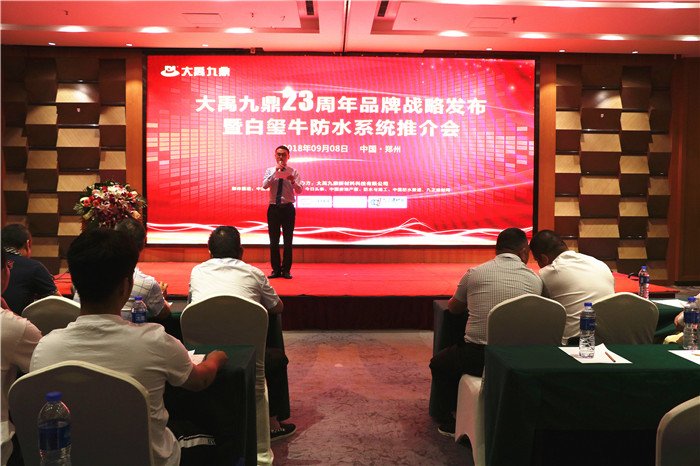 【新一代环保耐久防水系统面市】大禹九鼎23周年品牌战略发布暨白玺牛防水系统推介会在郑州成功举行