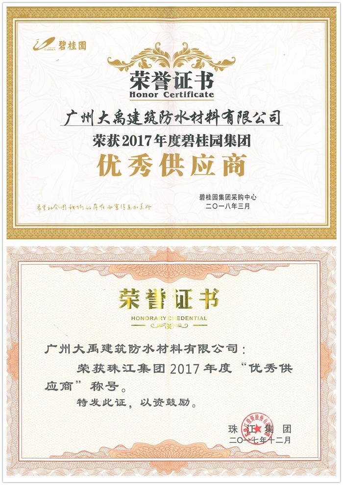 截止目前,我们与碧桂园集团、珠江投资、合生创展、敏捷地产、龙光地产、合汇地产、华世界、金融街控股等知名地产公司开展战略合作,与中铁、中建等旗下地产公司、保利、富力、实地等常年保持稳定项目合作关系。面对日益高标准严要求的地产类客户,大禹九鼎一直都在不断深化内功,不断提升产品与服务质量,以提升客户满意度。本着诚信合作和服务至上的宗旨,我们为各大地产公司配置高质量服务团队,成为其“可信赖的供应商”;在资源供应方面我们优先满足地产大项目的供货需求,成为其“靠得住的供应商”。高品质服务也为大禹九鼎赢得了合作方的认可,2017年大禹九鼎分别荣获碧桂园集团、珠江投资集团2017年度优秀供应商称号。