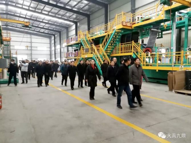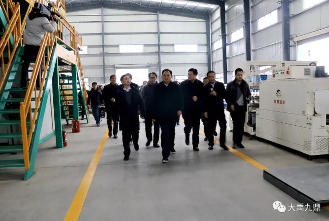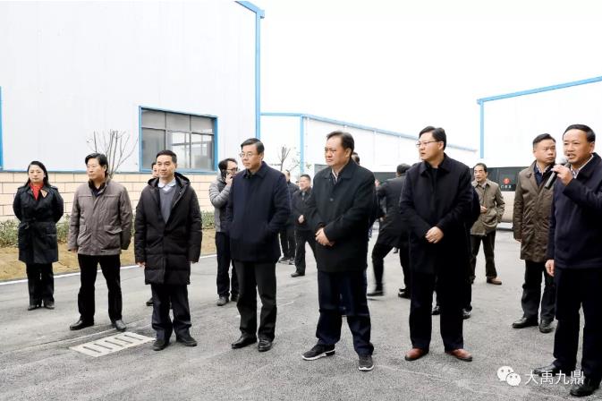 2018年12月15日下午,湖北省孝感市市委书记潘启胜、市长吴海涛率领市“四大班子”领导、各县市区和市直“三区”党政主要负责人、市直相关单位主要负责人共一百余人,参观考察了湖北大禹九鼎新材料科技有限公司(大禹九鼎孝感生产基地)。大禹九鼎集团总经理胡筱诚、湖北大禹九鼎总经理叶茂辉携相关部门领导接待了前来考察的各级领导。