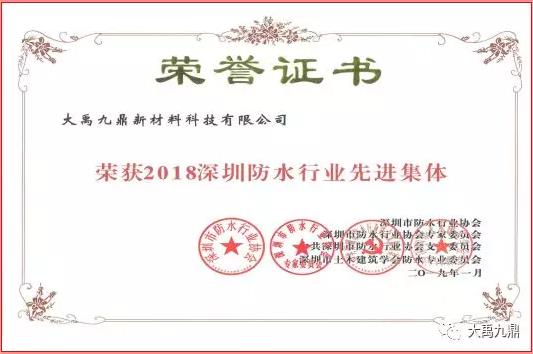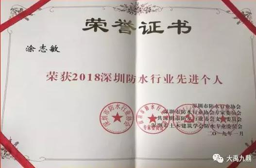 【再添荣誉】大禹九鼎荣获2018深圳防水行业先进集体及先进个人