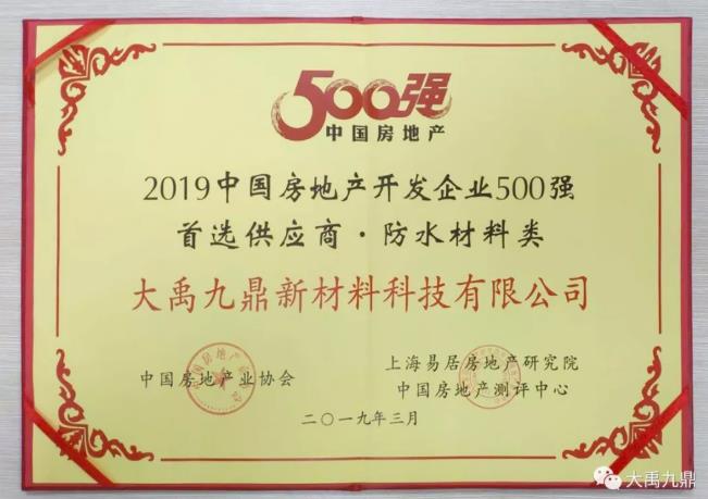 【实至名归】大禹九鼎荣获“500强房企首选供应商”